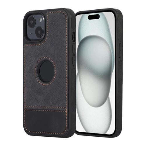 Funda para Teléfono iPhone 15 de PU con Recorte Hueco y Costura con Empalme (Negro)