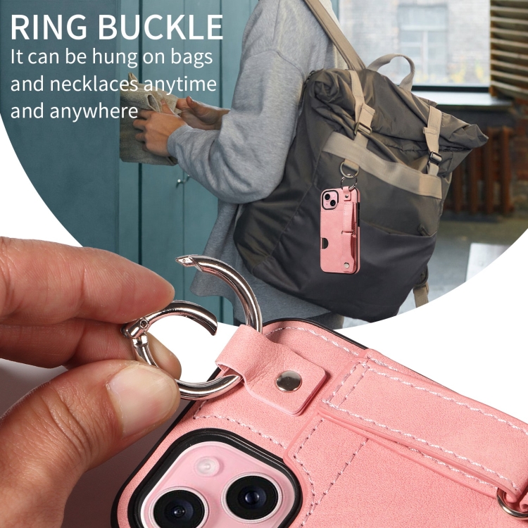 Funda para Teléfono iPhone 15 Plus con Anillo y Ranura para Tarjeta Textura de Pantorrilla (Rosa)