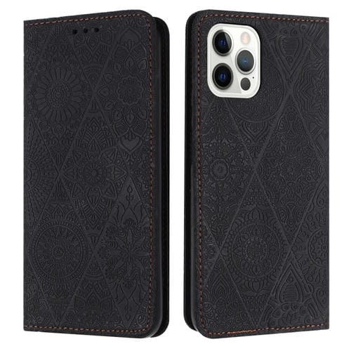 Estuche para Teléfono iPhone 15 Pro Cuero Adsorción Relieve Étnico (Negro)