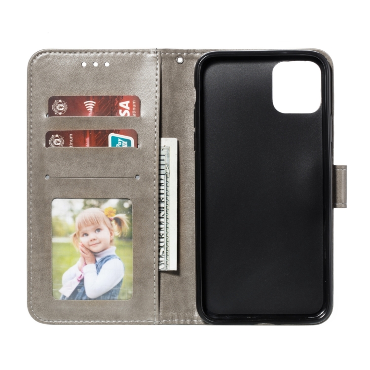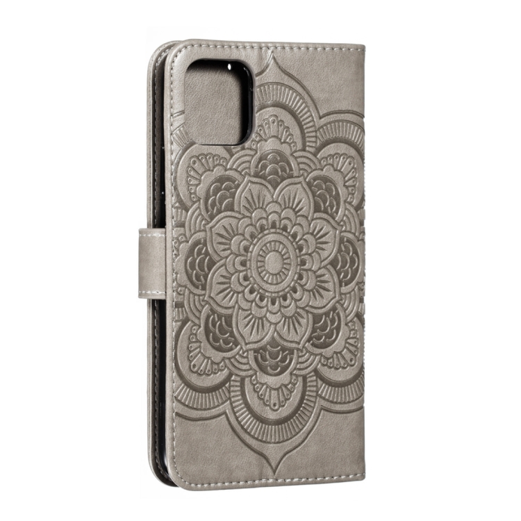 Funda para teléfono iPhone 15 Pro cuero con tapa horizontal patrón mandala (Gris)