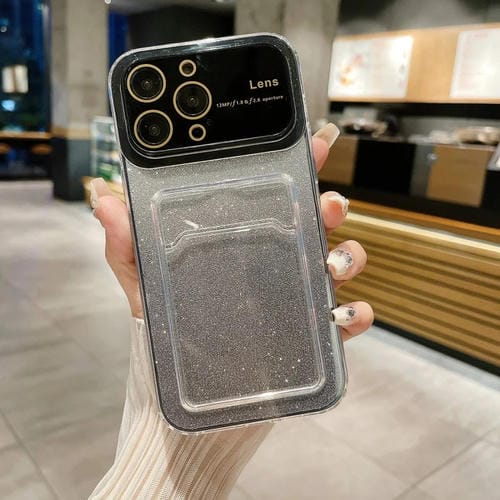 Estuche para Teléfono iPhone 15 Pro Max con Brillo Degradado Ventana Grande y Ranura para Tarjeta (Negro)