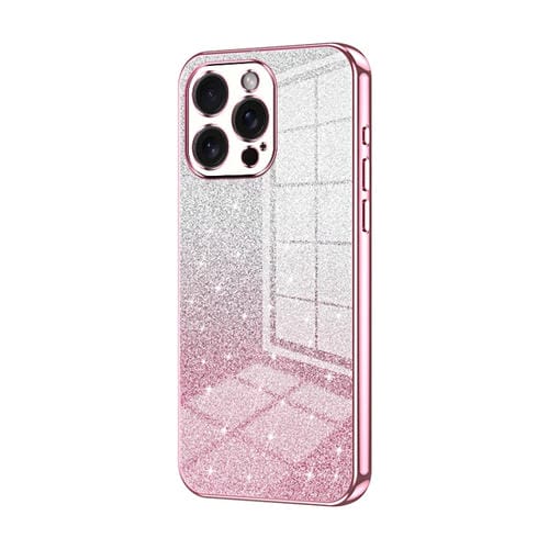 Estuche para Teléfono iPhone 15 Pro Max Galvanizado con Purpurina en Polvo Degradado (Rosa)