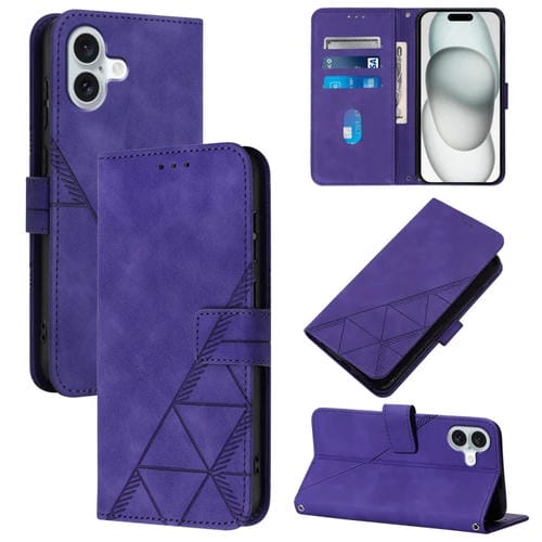 Funda para teléfono iPhone 16 Plus cuero con tapa en relieve 3D Crossbody (Púrpura)