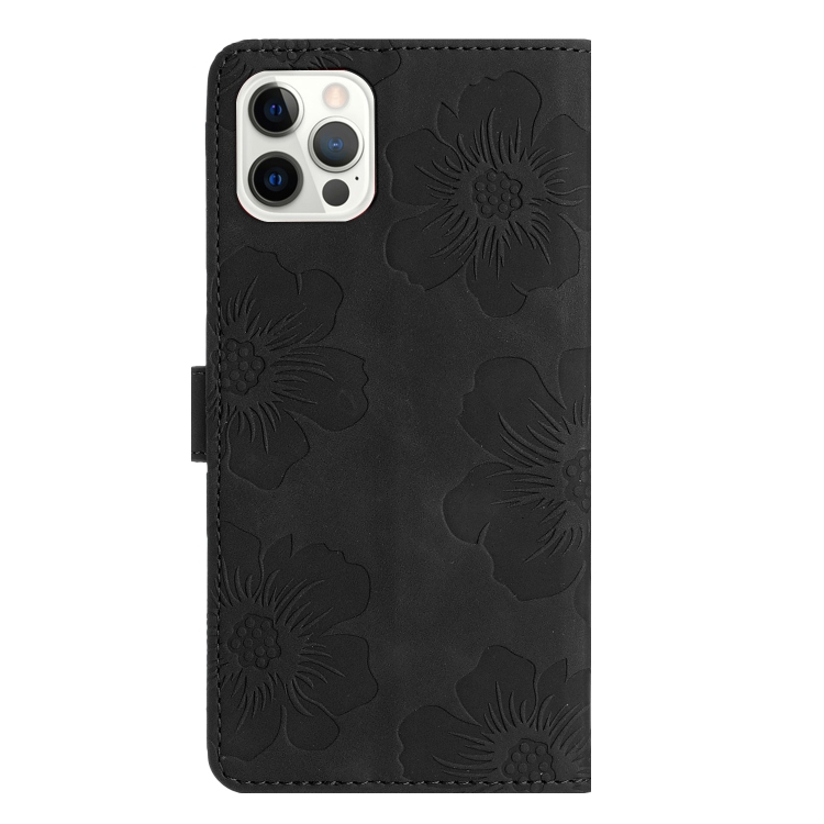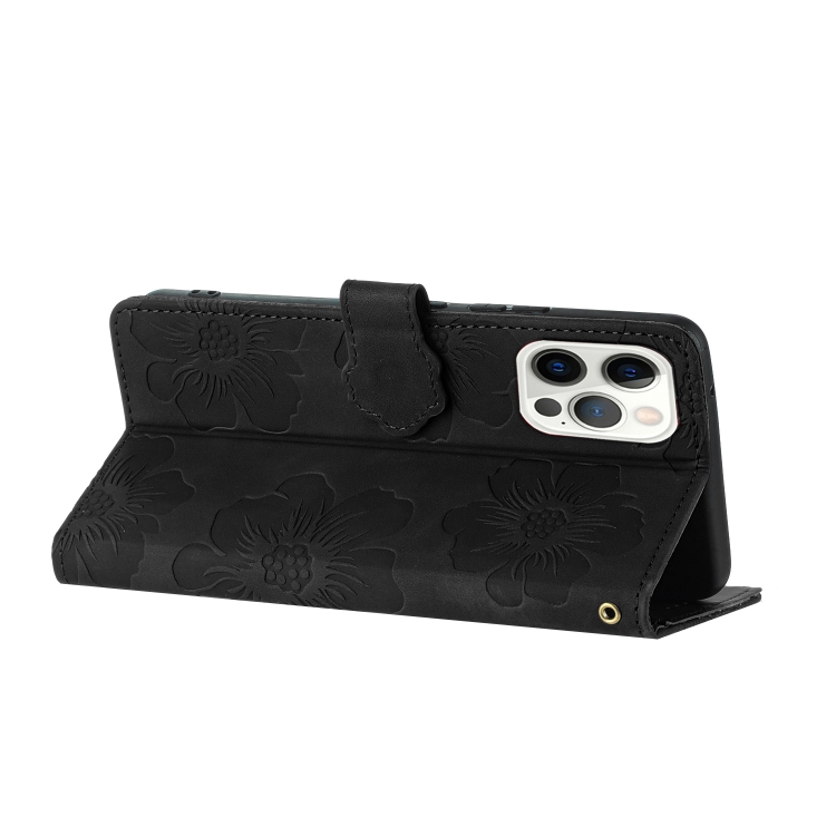 Funda para iPhone 16 Pro Max Cuero Estampado de Flores (Negro)