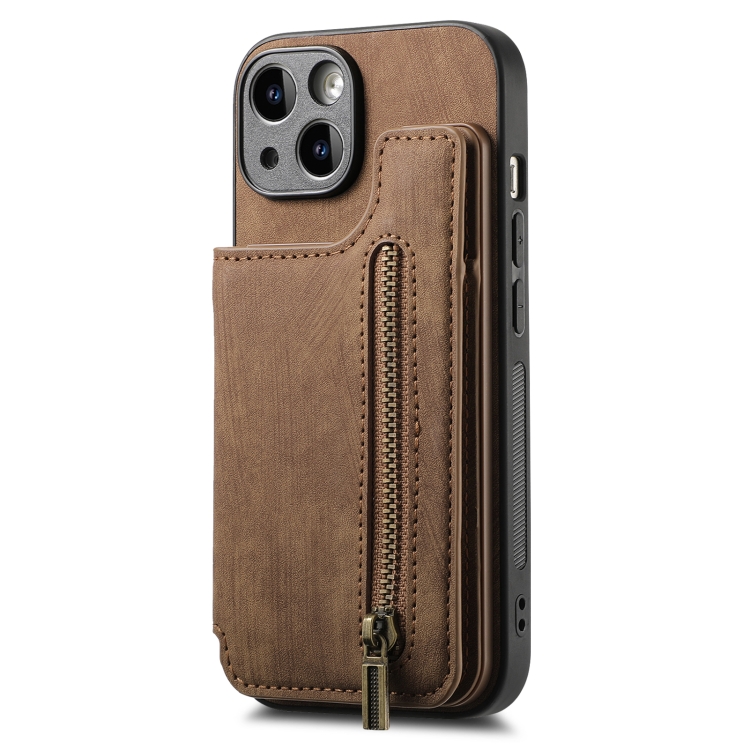 Funda para iPhone 6/6S Cuero Retro con Cremallera y Billetera (Marrón)