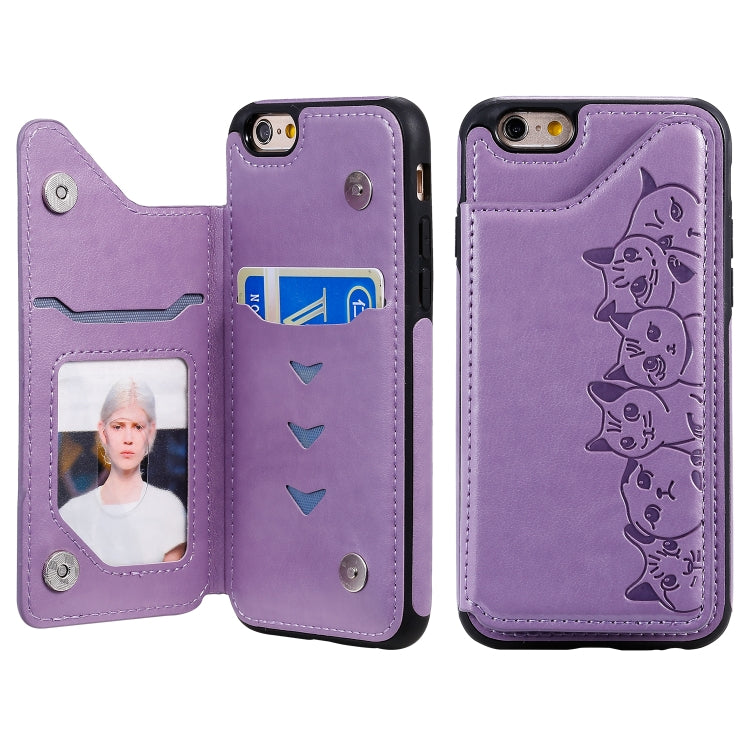 Funda Protectora Six Cats para iPhone 6 con Patrón en Relieve Soporte Ranuras para Tarjetas y Marco de Fotos (Púrpura)