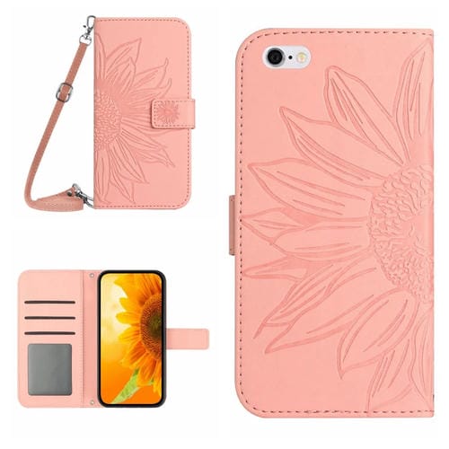 Funda de Cuero Flip para iPhone 6S Plus Skin Feel Sun Flower Pattern con Cordón (Rosa)