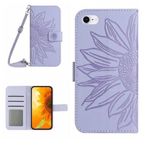 Funda Flip de Cuero para iPhone 7/8 Skin Feel Sun Flower Pattern con Cordón (Púrpura)