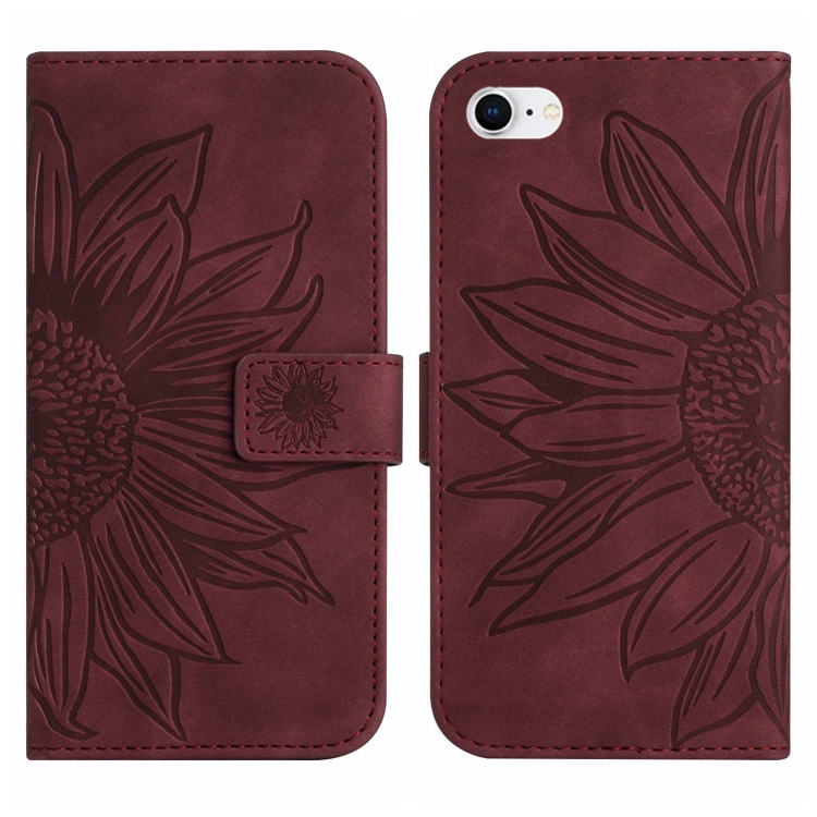 Funda para iPhone 7/8 Skin Feel Sun Flower Pattern Flip de Cuero con Cordón (Rojo Vino)