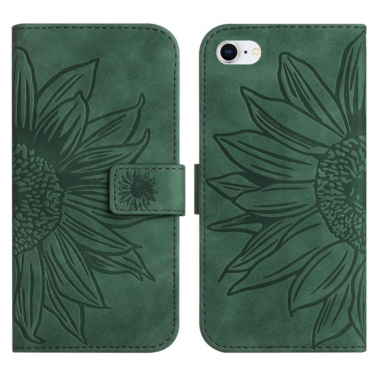 Funda Flip de Cuero para iPhone 7/8 Skin Feel Sun Flower Pattern con Cordón (Verde)