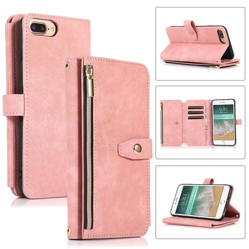 Funda para Teléfono iPhone 7 Plus 8 Plus Dream 9-Card Wallet Zipper Bag de Cuero (Rosa)