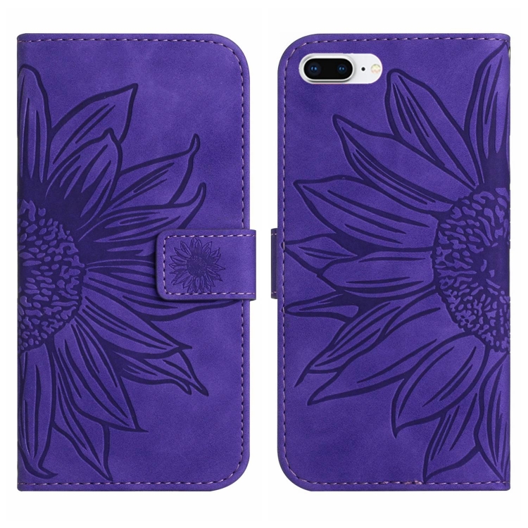 Funda de cuero para iPhone 7 Plus / 8 Plus Skin Feel con patrón Sun Flower y cordón (Púrpura Oscuro)