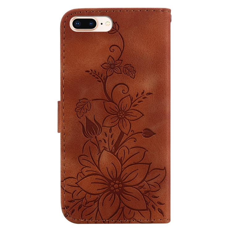 Funda para iPhone 8 Plus/7 Plus Cuero con Relieve Lily (Marrón)