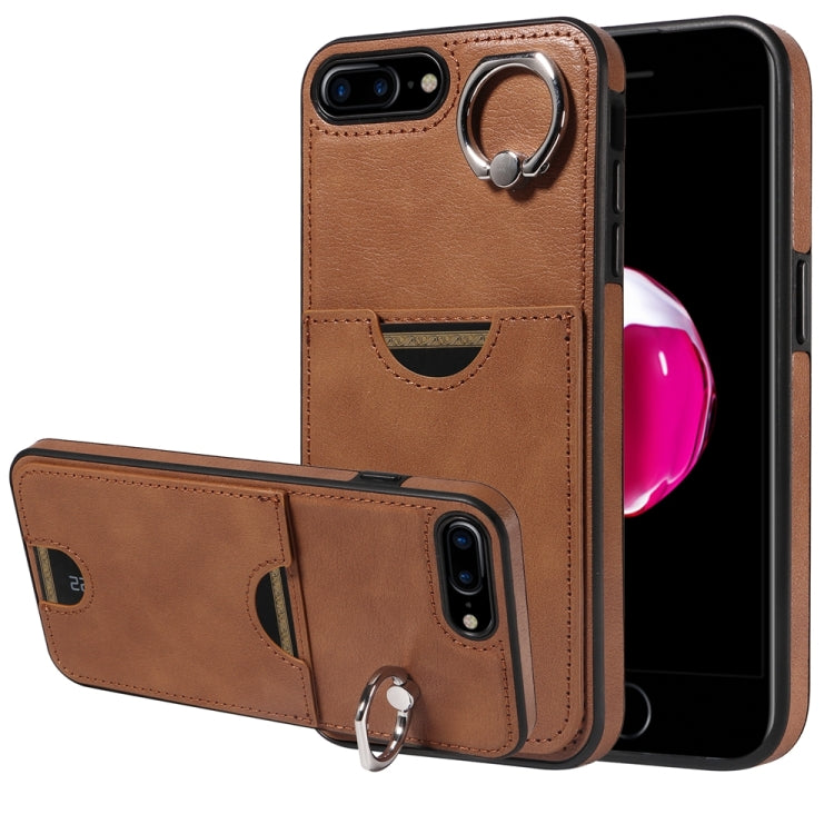 Funda para Teléfono iPhone 8 Plus/7 Plus Soporte Anillo Ranura Tarjeta (Marrón)