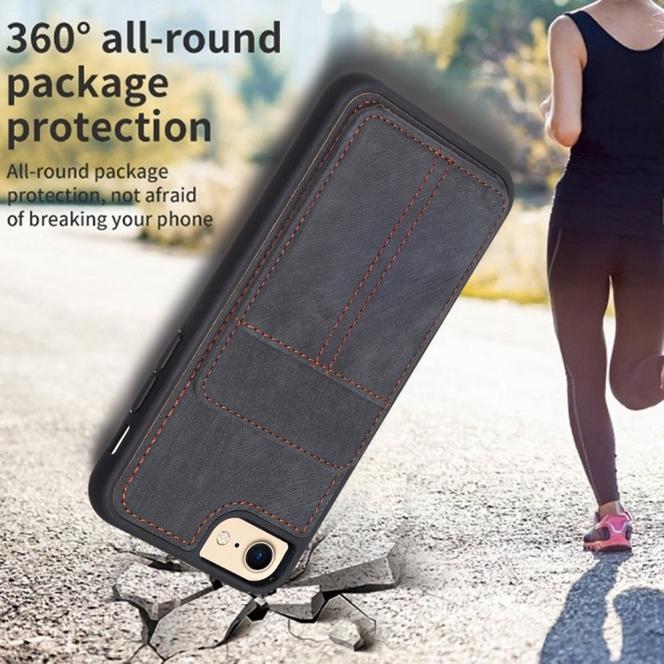 Estuche para Teléfono Bf28 para iPhone SE 2022/2020/8/7/6 con Bolsa para Tarjeta y Soporte (Negro)