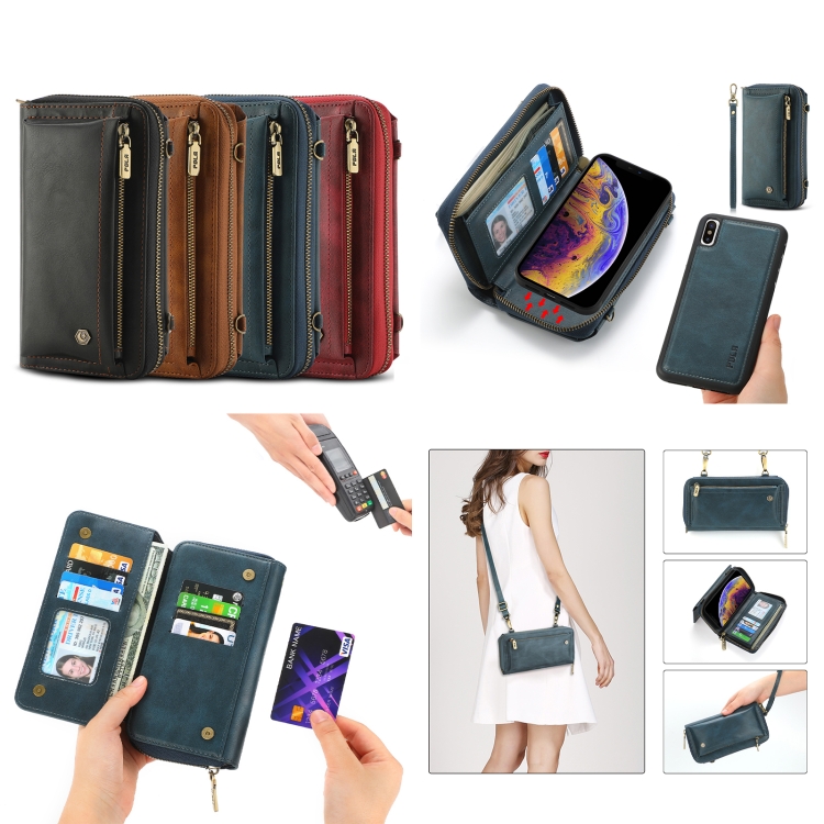 Funda para Teléfono iPhone X Crossbody Cuero con Billetera y Cremallera Multifuncional (Negro)