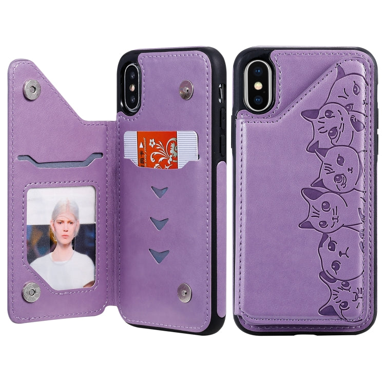 Estuche Protector Six Cats para iPhone X con Patrón En Relieve Soporte Ranuras Tarjetas y Marco de Fotos (Púrpura)