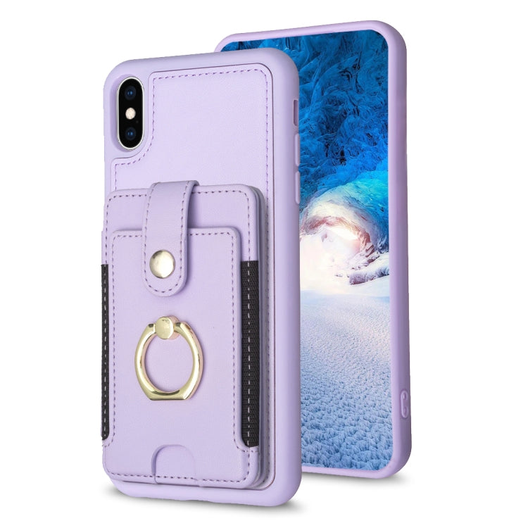 Funda para Teléfono Bf27 para iPhone X / Xs con Soporte para Tarjeta y Anillo de Metal (Púrpura)