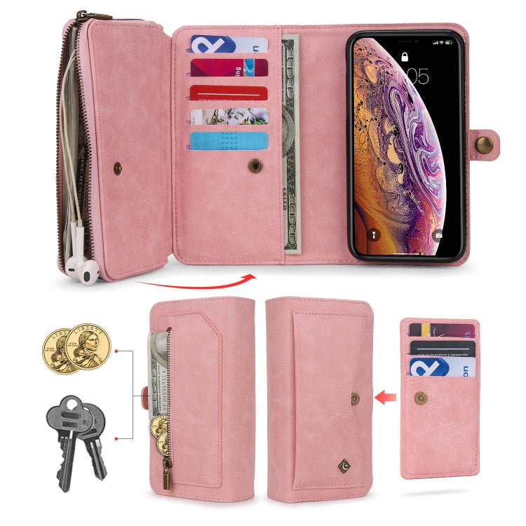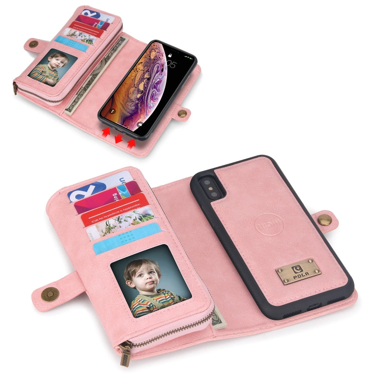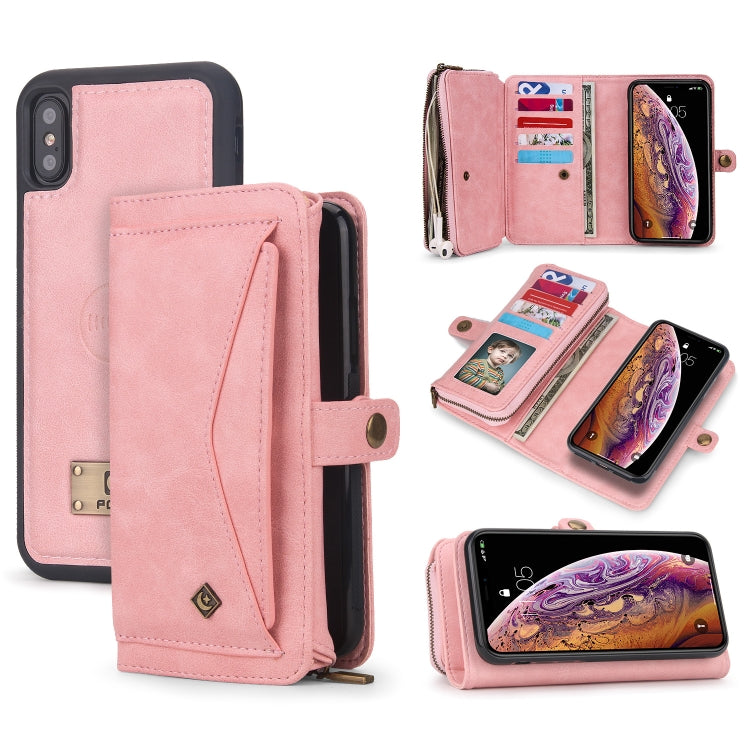Funda para Teléfono iPhone X Xs Cuero con Billetera y Cremallera Multifuncional (Rosa)