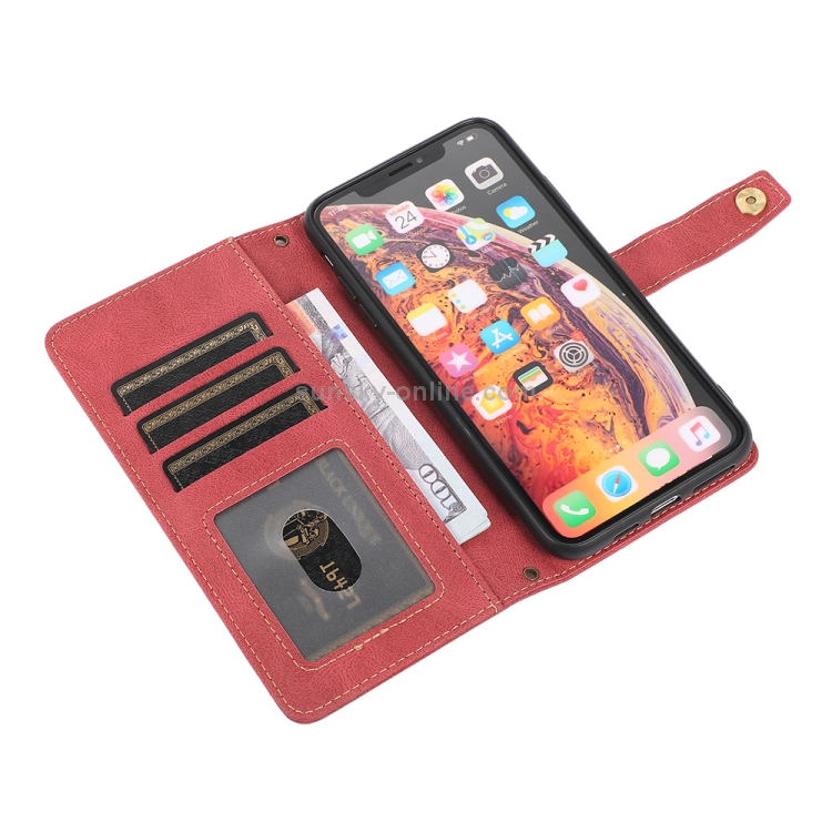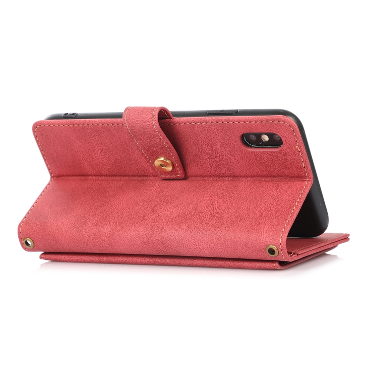 Funda para iPhone X / Xs de Cuero PU + TPU con Tapa Horizontal, Soporte, Ranura para Tarjeta, Billetera y Cordón (Rojo Vino)