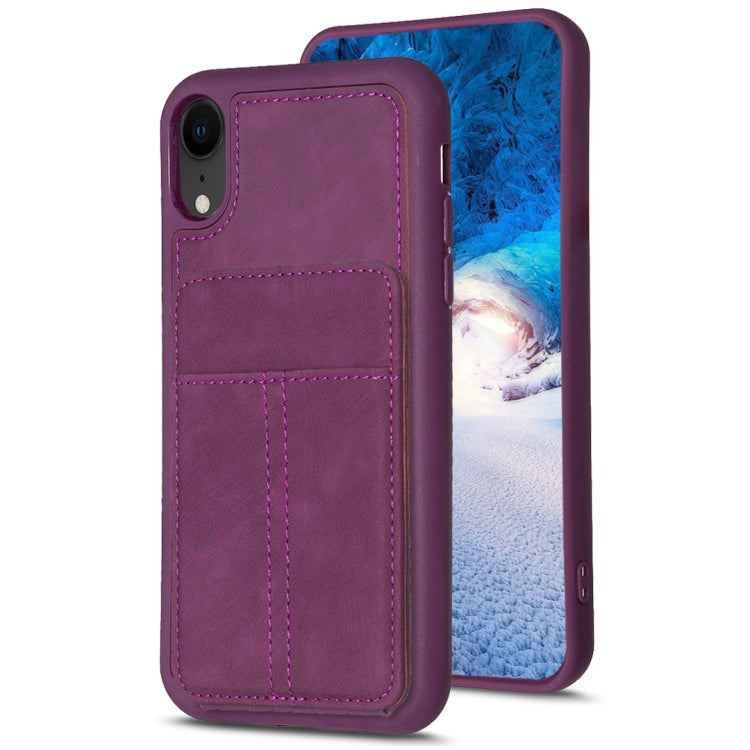 Estuche para Teléfono Bf28 para iPhone Xr con Bolsa para Tarjeta Esmerilada y Soporte (Púrpura Oscuro)