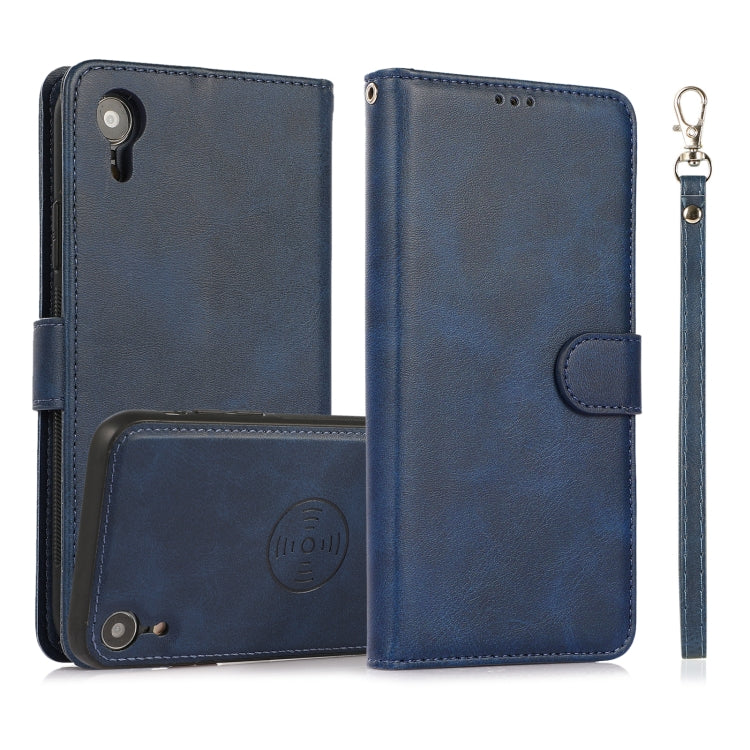 Funda para iPhone Xr Textura de Becerro 2 en 1 Cubierta Trasera Magnética Desmontable Cuero con Tapa Horizontal Soporte Ranuras Tarjetas Billetera Marco Fotos (Azul)