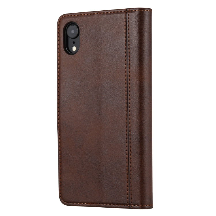 Funda de Cuero para iPhone Xr Textura de Pantorrilla Cierre de Doble Pliegue con Tapa Horizontal y Soporte (Café)