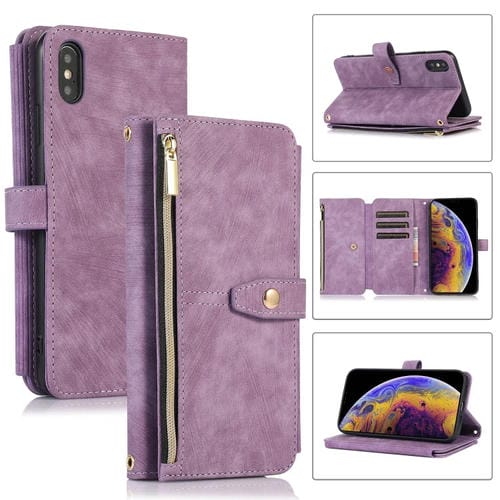 Funda de Cuero Dream 9-Card Wallet Zipper Bag para iPhone Xs Max (Púrpura)