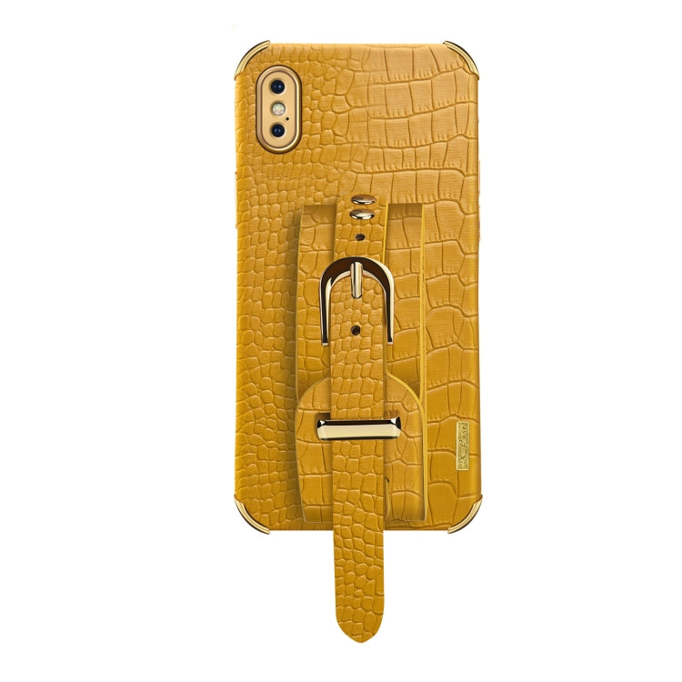 Estuche de Cuero para iPhone Xs Max con Patrón de Cocodrilo TPU Galvanizado y Correa para Muñeca (Amarillo)