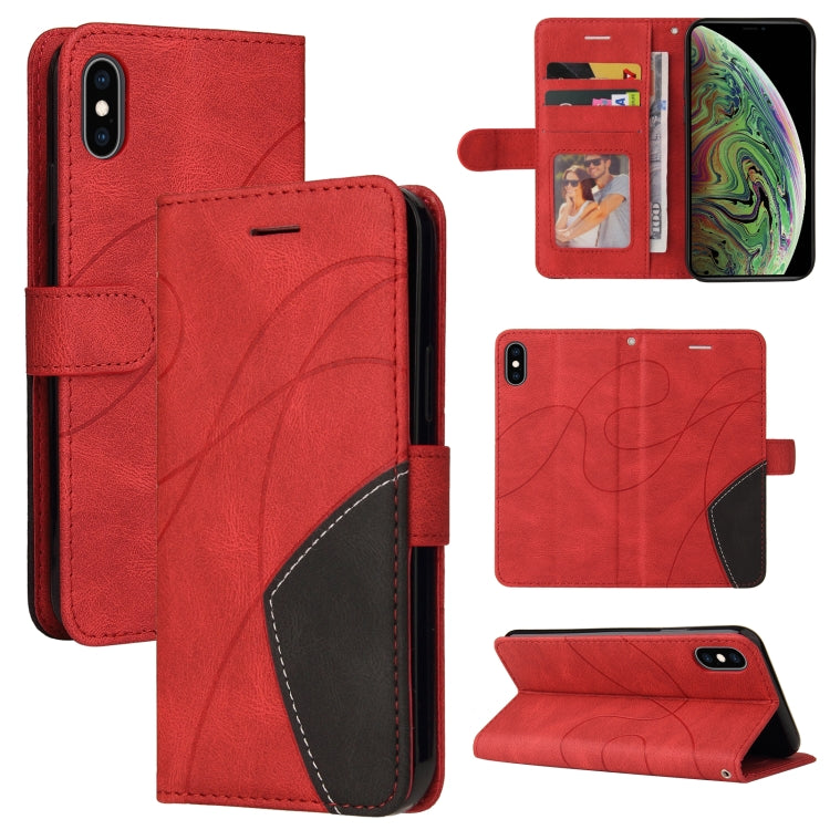 Estuche para iPhone Xs Max Cuero de Pu Tapa Horizontal Empalme Dos Colores Soporte Ranuras Tarjetas Billetera (Rojo)