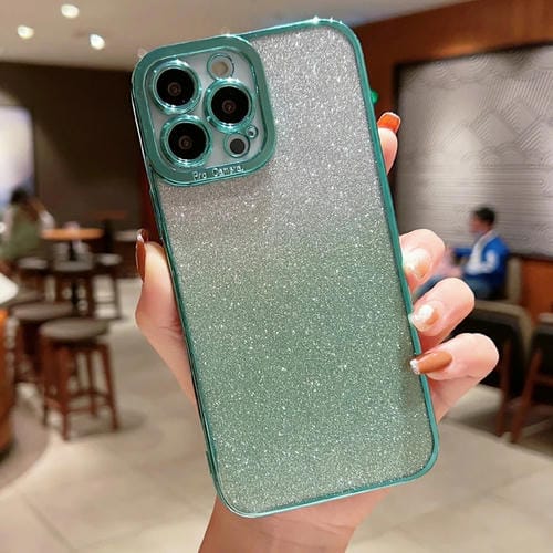 Funda TPU para iPhone Xs Max High Transparente Gradient Color Glitter (Verde Claro)
