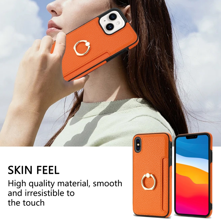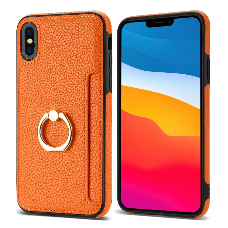 Funda Trasera de Cuero Ring Card para iPhone Xs Max (Naranja)