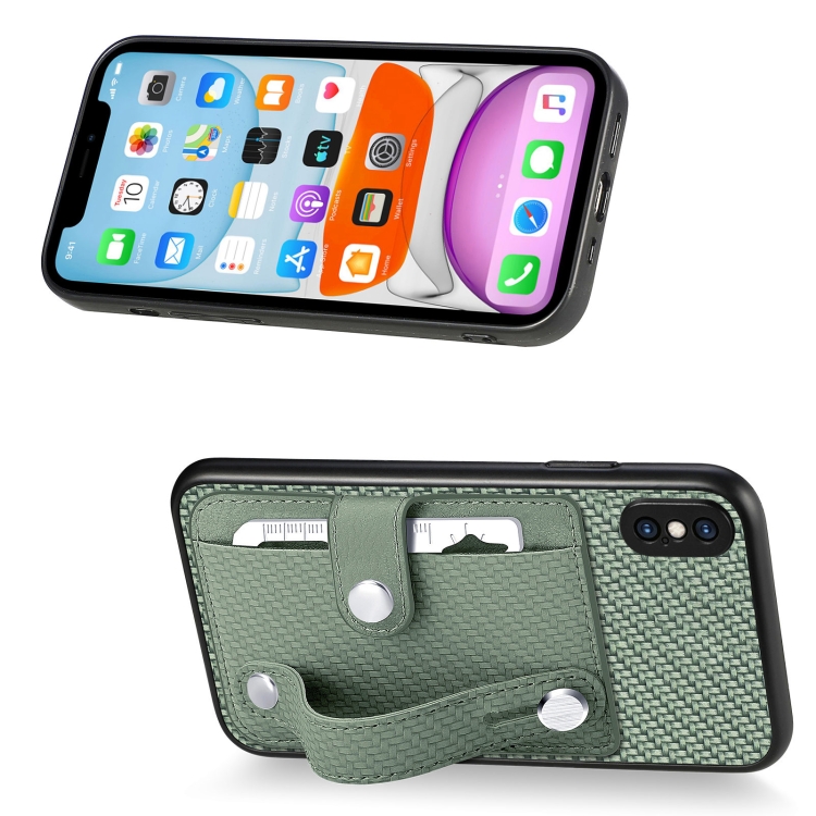 Funda para iPhone Xs Max Wristband Kickstand Card Wallet con Tool Knife (Verde)
