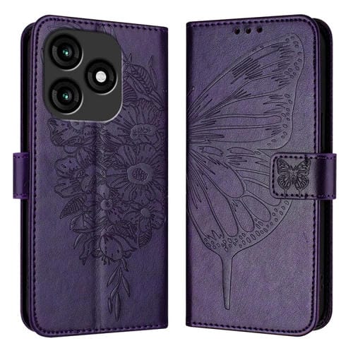 Funda de Cuero para Itel A70 con Mariposa en Relieve (Púrpura Oscuro)