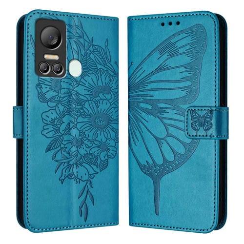 Funda de Cuero para Itel S18 / Vision 5 con Mariposa en Relieve (Azul)