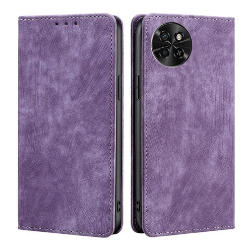 Funda de Cuero Magnética para Itel S23 4G con Rfid y Cepillo Antirrobo (Púrpura)