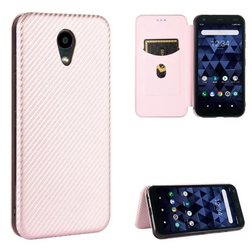 Carcasa para Kyocera Digno Bx Cuero Fibra de Carbono Magnética con Tapa Horizontal TPU + PC + PU (Rosa)