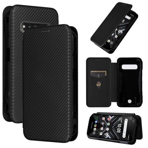 Funda de Cuero con Tapa para Kyocera Torque G06 Kyg03 con Textura de Fibra de Carbono (Negro)