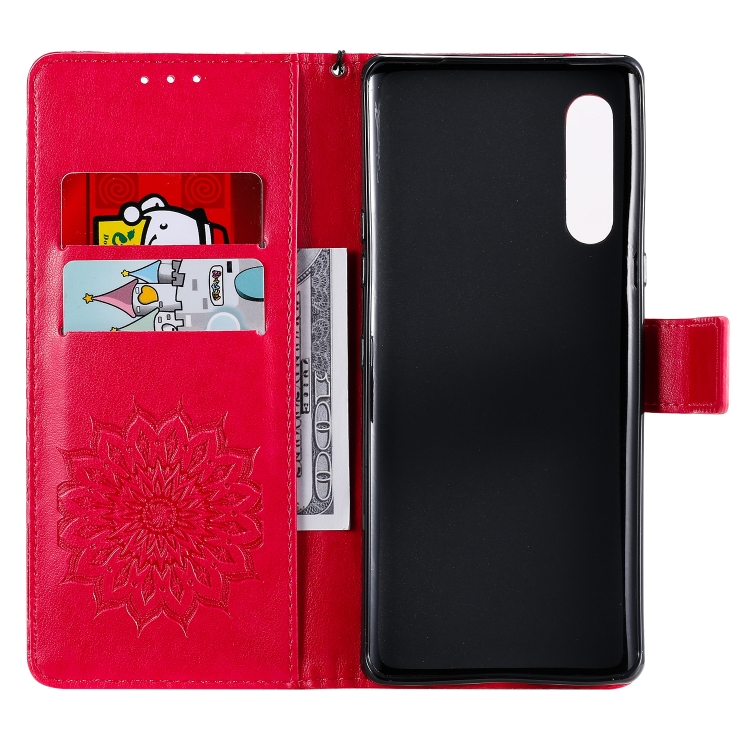 Funda Cuero PU para LG G9 con Tapa Horizontal, Soporte, Ranuras para Tarjetas y Cordón (Rojo)
