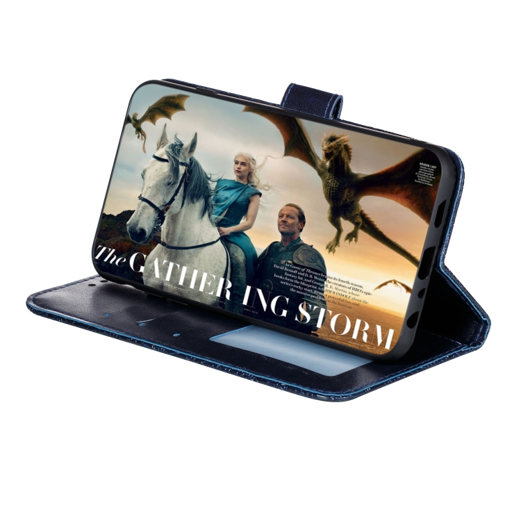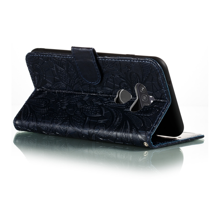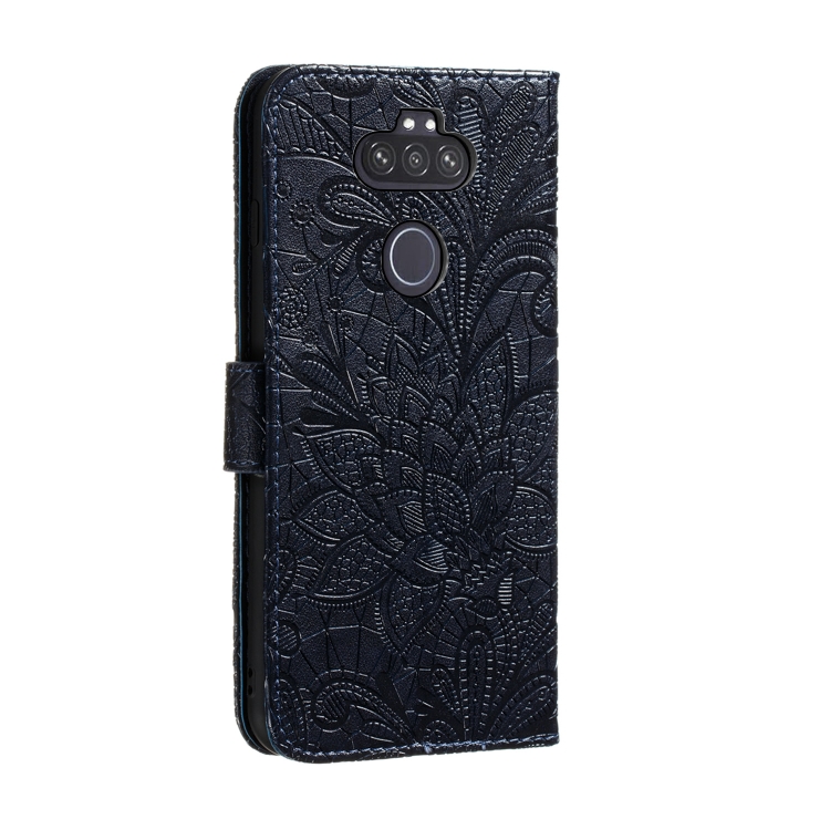Estuche de Cuero para LG K31 con Tapa Horizontal, Soporte, Ranuras para Tarjetas, Billetera y Cordón (Azul Oscuro)