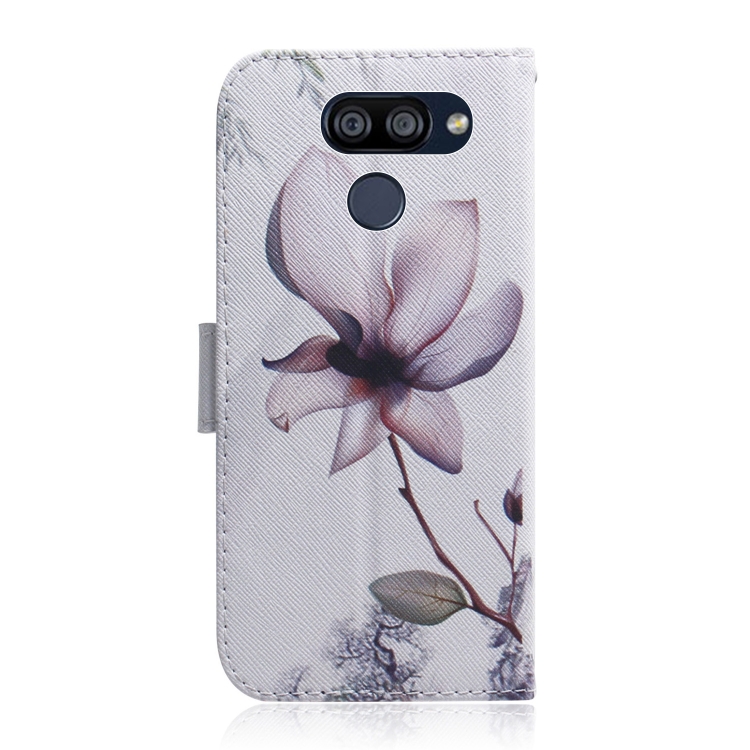 Estuche de Cuero para LG K40S con Tapa Magnética, Soporte, Ranura para Tarjeta y Billetera (Flor de Magnolia)