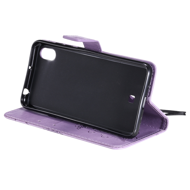 Funda Cuero PU para LG K40S con Tapa Horizontal, Soporte, Ranuras para Tarjetas, Billetera y Cordón (Púrpura)