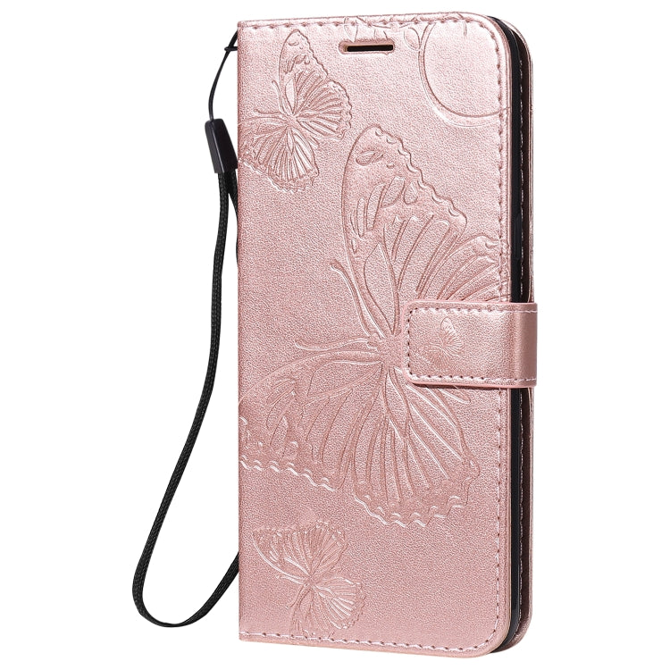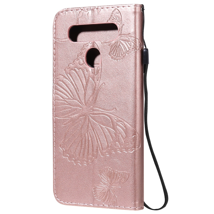 Funda de Cuero para LG K41S y K51S 3D Mariposa en Relieve con Soporte, Ranura y Cordón (Oro Rosa)