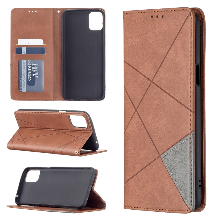 Funda Magnética Horizontal Flip para LG K42 Rhombus Texture con Soporte y Ranuras para Tarjetas (Marrón)