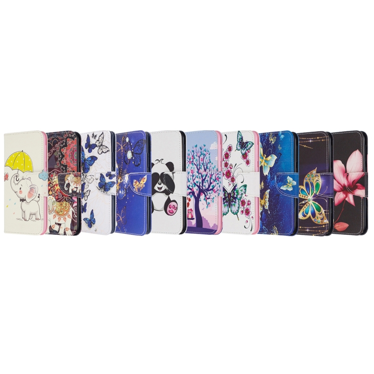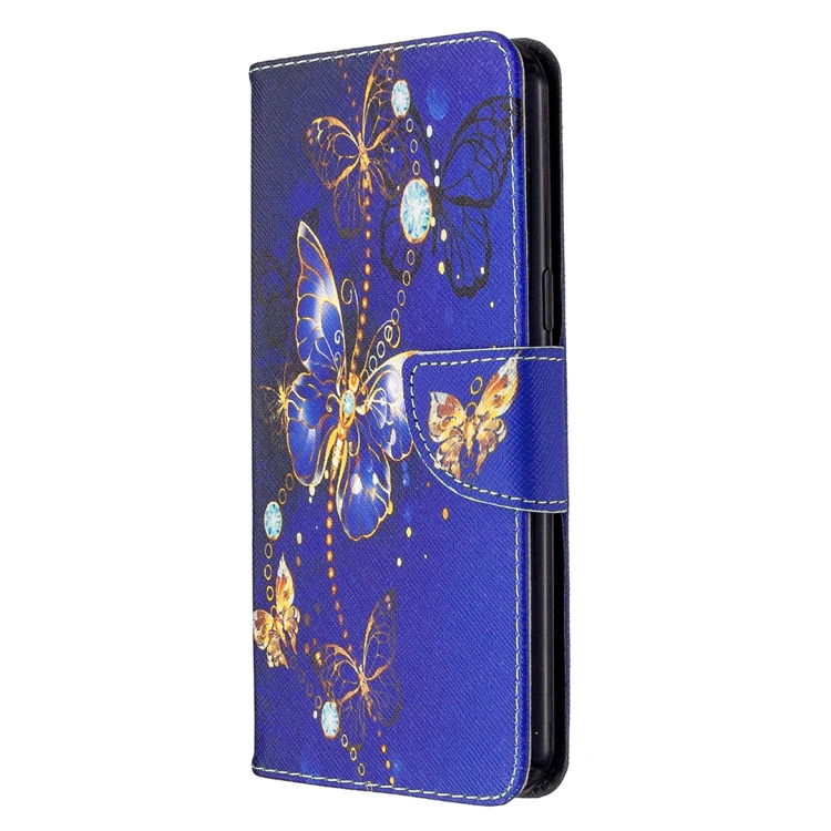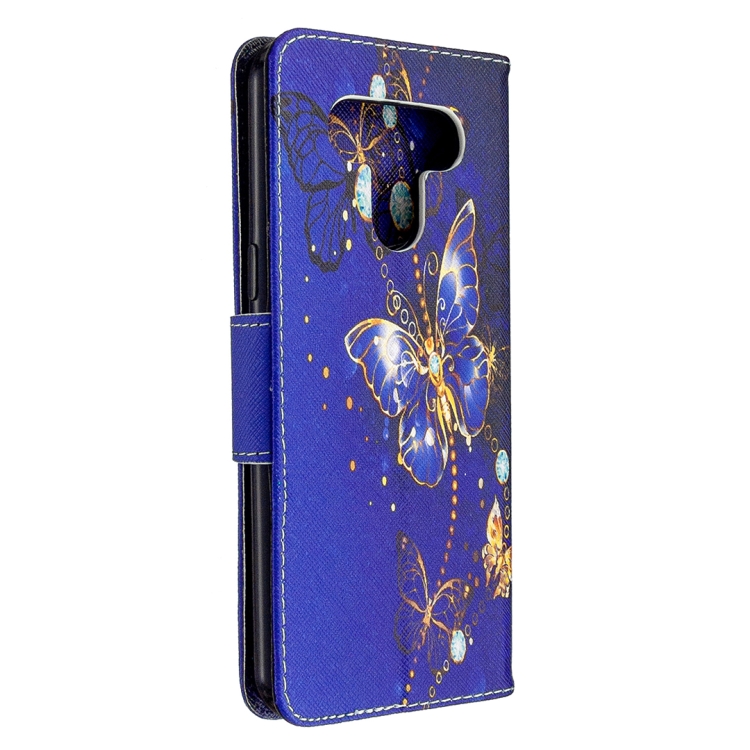 Estuche de Cuero Abatible Horizontal para LG K51 con Soporte, Ranuras y Billetera (Mariposa Púrpura)