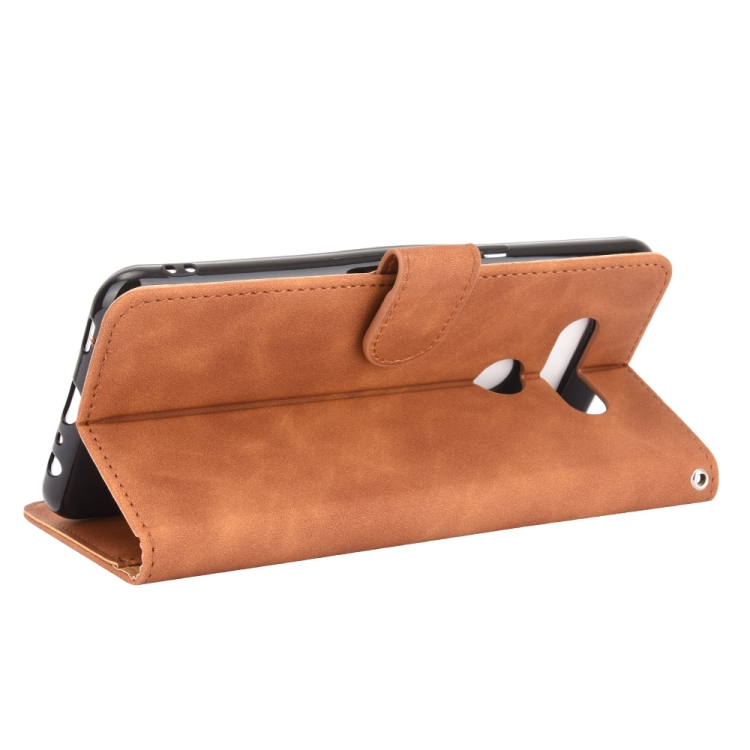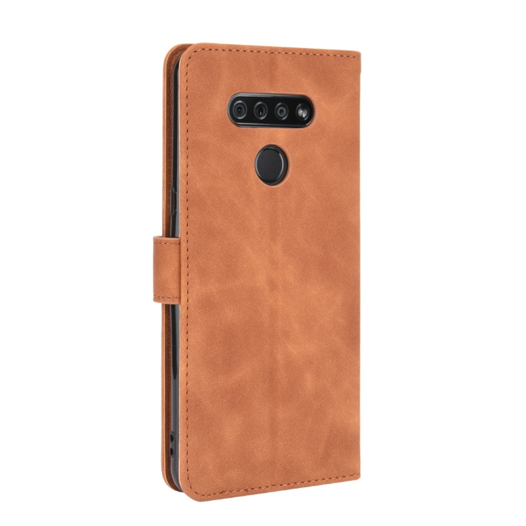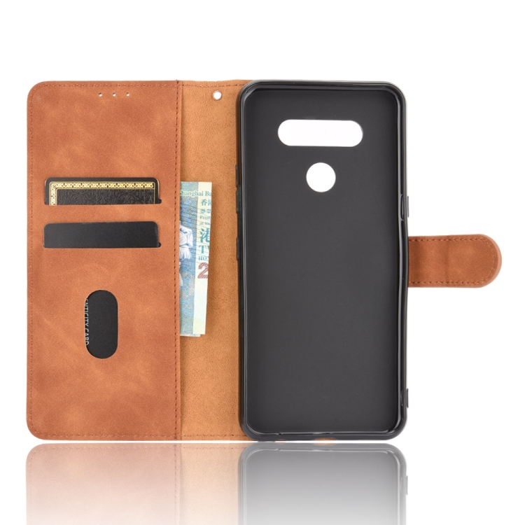 Estuche Cuero Sintético LG K51 Q51 con Hebilla Magnética, Soporte, Ranuras y Billetera (Marrón)