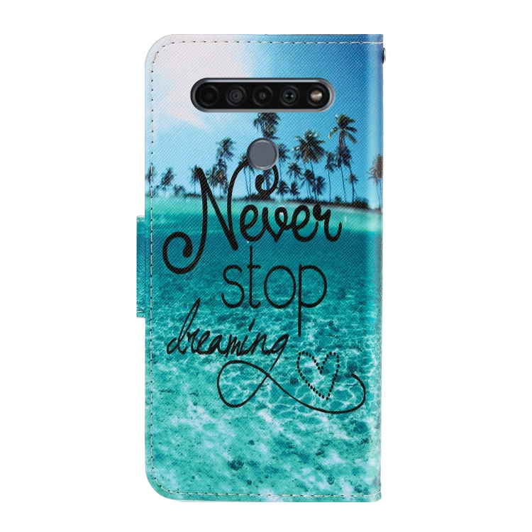 Funda de Cuero Abatible Horizontal para LG K61 con Dibujo Coloreado, Soporte, Ranura para Tarjeta y Billetera (Blue Coconut Grove)