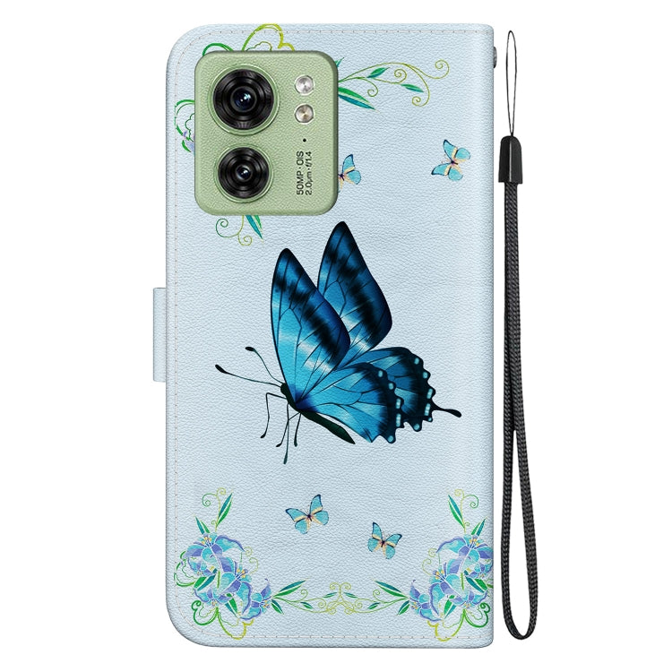 Funda de Cuero para Motorola Edge 40 con Dibujo Coloreado y Textura de Cristal (Pensamientos Azules)