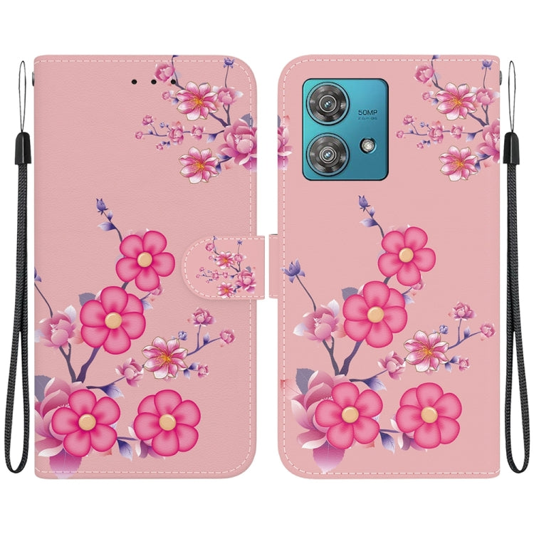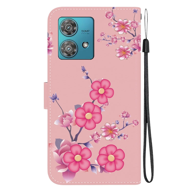 Estuche para Motorola Edge 40 Neo de Cuero con Dibujo Coloreado y Textura de Cristal (Flores de Cerezo)