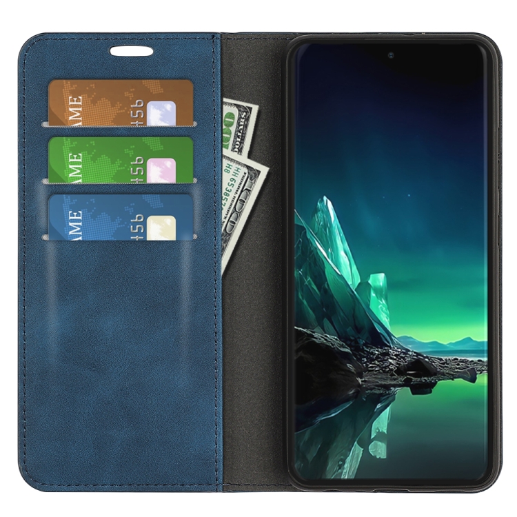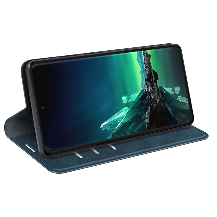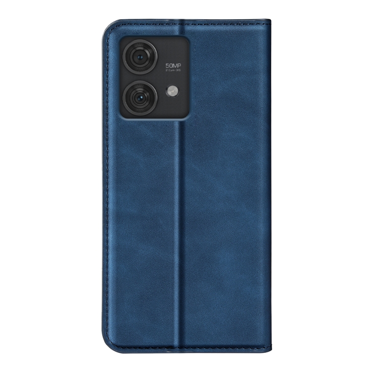 Funda de Cuero para Motorola Edge 40 Neo con Succión Magnética Piel Retro (Azul Oscuro)